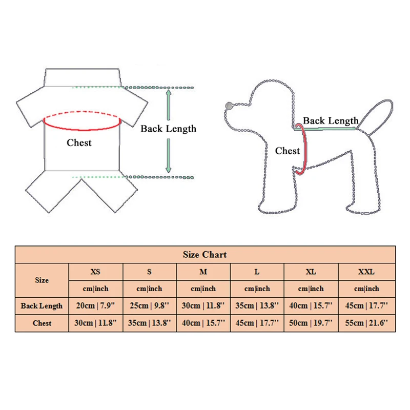 ⚠️ Te recomendamos medir el pecho y el lomo de tu perro antes de la compra.