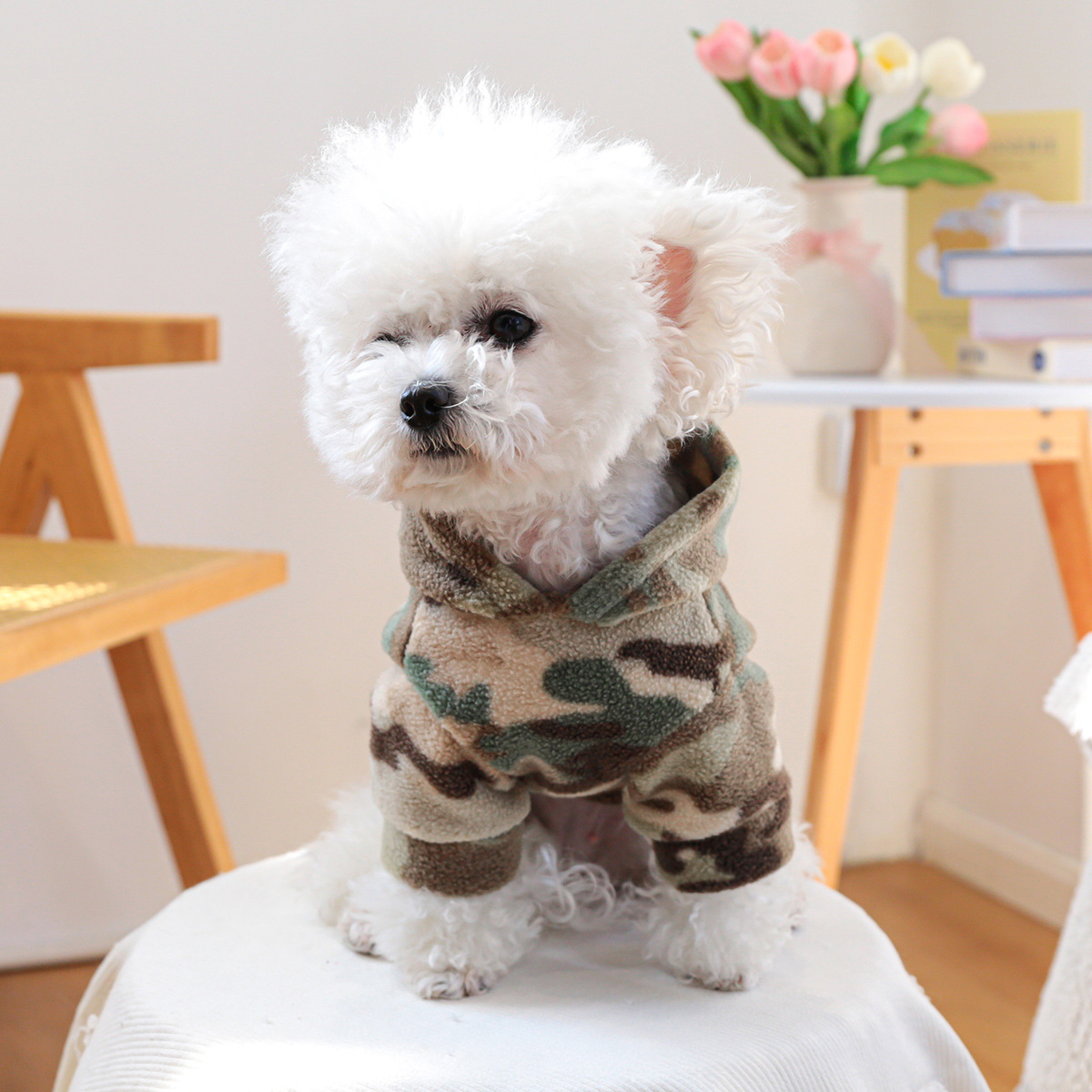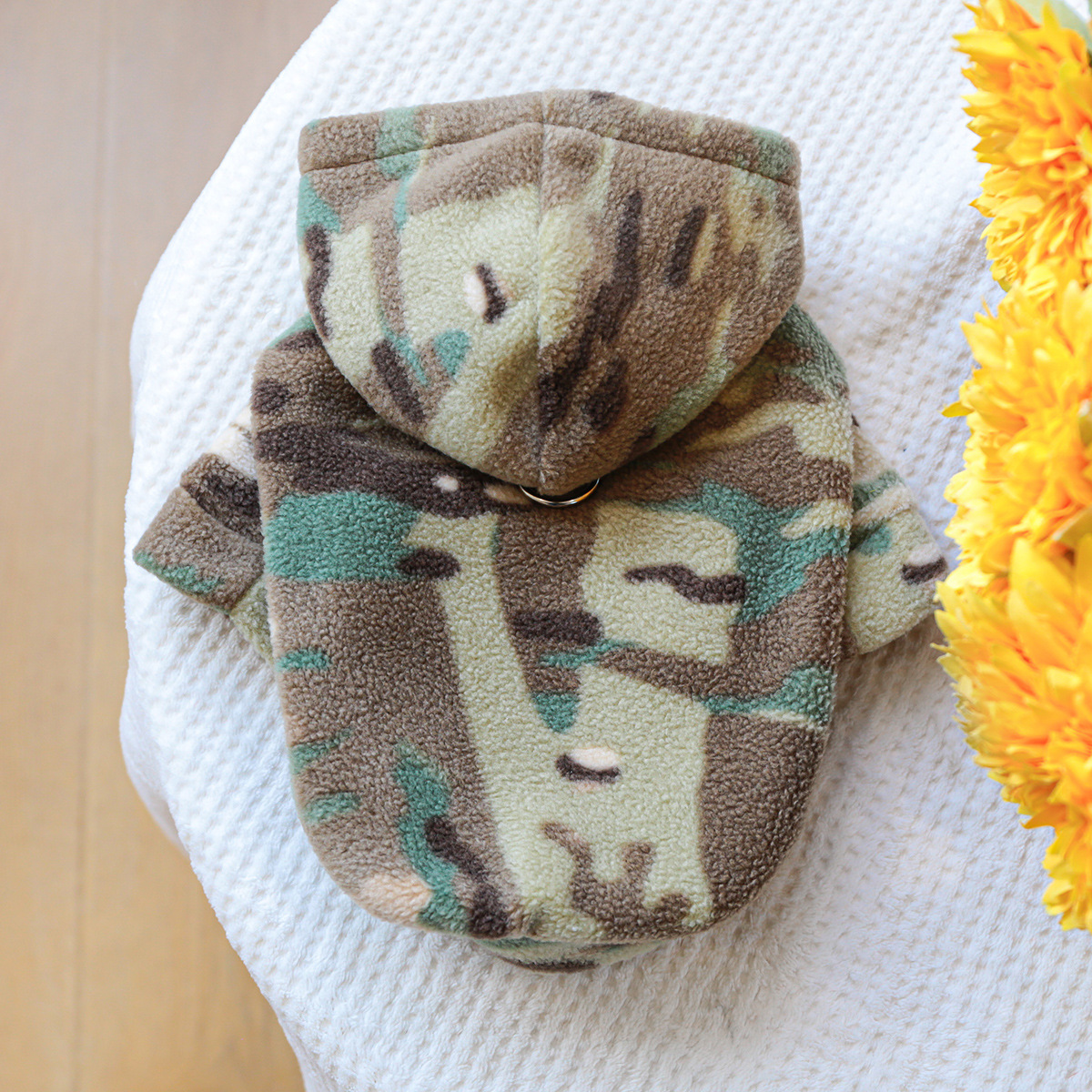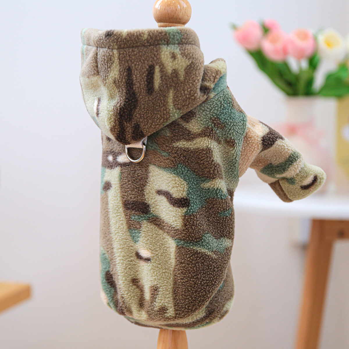 Trasforma il tuo cane in un vero avventuriero con questo vestito per cani camouflage verde! Dotato di cappuccio pratico e anello per guinzaglio integrato, questo completo è ideale per le passeggiate all'aria aperta, offrendo stile e funzionalità. Il design militare lo rende perfetto per cani attivi e amanti dell'avventura.